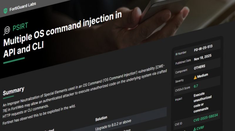 La vulnerabilidad CVE-2024-58034 ha sido catalogada con una puntuación CVSS de 6,7 sobre 10, lo que la sitúa en una gravedad media según los criterios estándar, aunque su explotación puede implicar consecuencias graves dependiendo del contexto. El fallo se encuadra dentro de la categoría CWE-78: Improper Neutralization of Special Elements used in an OS Command (‘OS Command Injection’). Esto significa que un atacante autenticado puede manipular ciertos parámetros en las interfaces web de administración, inyectando comandos arbitrarios que luego son ejecutados con los privilegios del proceso FortiWeb.