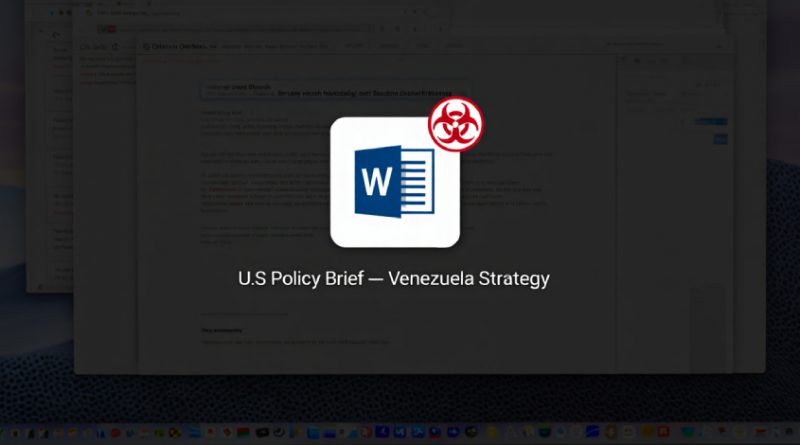 La campaña se identificó a través de correos electrónicos de spear phishing enviados a empleados de agencias federales y think tanks estadounidenses. El vector inicial se basa en archivos adjuntos ZIP con nombres como “US now deciding what’s next for Venezuela.zip”, lo que incrementa la tasa de apertura en el contexto de recientes decisiones diplomáticas. El uso de señuelos políticos demuestra la sofisticación y el entendimiento del entorno operativo de las víctimas por parte de los actores, quienes emplean técnicas de ingeniería social para maximizar el impacto de sus ataques.